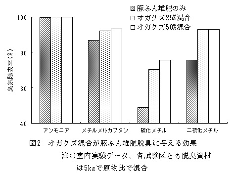 図2 オガクズ混合が豚ふん堆肥脱臭に与える効果
