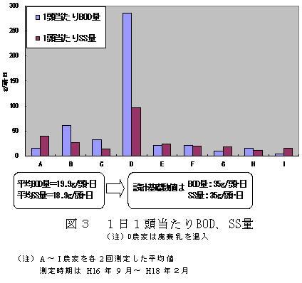 図3 1日1頭当たりBOD、SS量