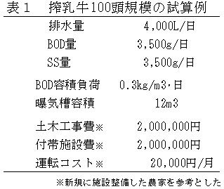 表1 搾乳牛100頭規模の試算例