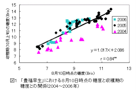 研究課題名:水分ストレスの簡易現場診断による九州産極早生温州の高糖度化技術の開発 予算区分 :国庫(高度化事業) 研究期間 :2005〜2006年度