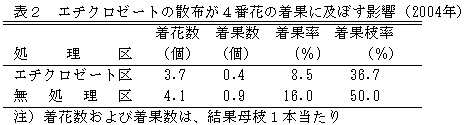 表2 エチクロゼートの散布が4番花の着果に及ぼす影響(2004年)
