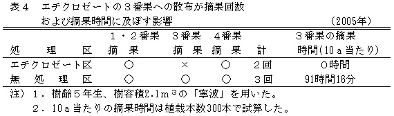 表4 エチクロゼートの3番果への散布が摘果回数および摘果時間に及ぼす影響(2005年)