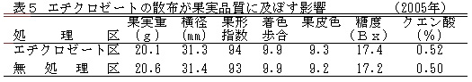表5 エチクロゼートの散布が果実品質に及ぼす影響(2005年)