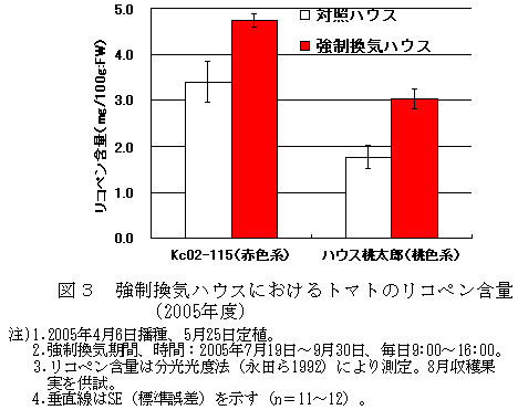 図3 強制換気ハウスにおけるトマトのリコペン含量