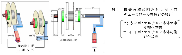図1 装置の模式図とセンター用チューブロール支持部の設計