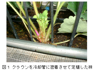図1 クラウンを冷却管に密着させて定植した株