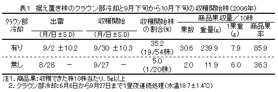 表1 据え置き株のクラウン部冷却と9月下旬から10月下旬の収穫開始株(2006年)