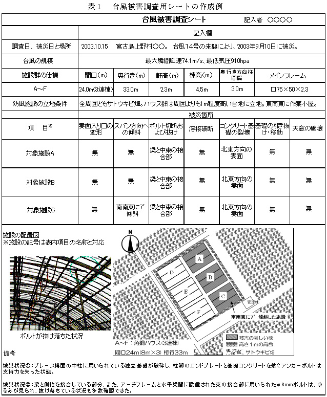 園芸用施設の被災要因を整理するための台風被害調査シート