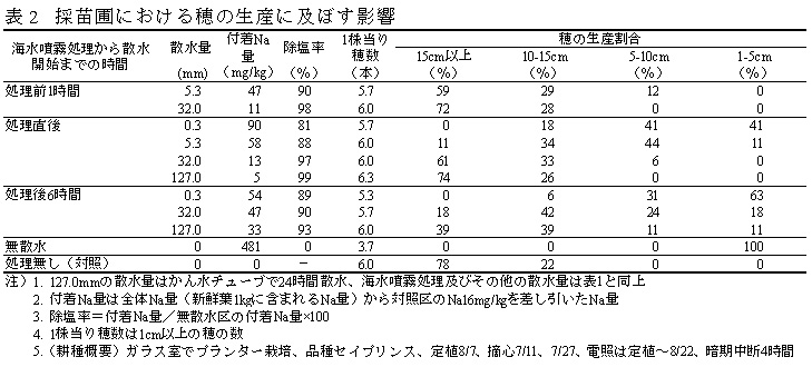 表2 採苗圃における穂の生産に及ぼす影響
