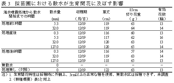 表3 採苗圃における散水が生育開花に及ぼす影響