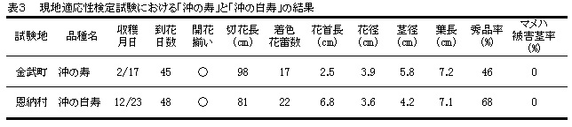 表3 現地適応性検定試験における「沖の寿」と「沖の白寿」の結果