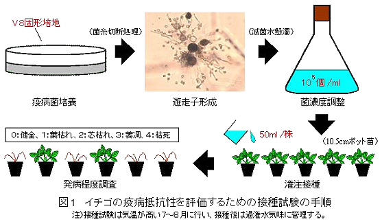 図1 イチゴの疫病抵抗性を評価するための接種試験の手順