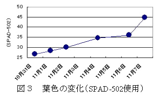 幼苗期のメロンは灌水をやめると葉色は濃くなる(図3)。また、水ポテンシャルとレッドエッジには高い相関がある(図4)。