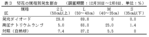 表3 切花の規格別発生割合(調査期間:12月30日〜2月6日、単位:%)