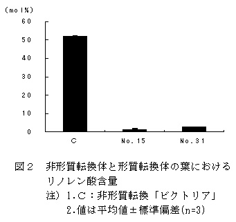 獲得した形質転換体2個体の葉におけるリノレン酸含量は、非形質転換体と比較して著しく低下した(図2)。