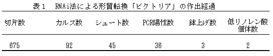 表1 RNAiによる形質転換「ビクトリア」の作出経過