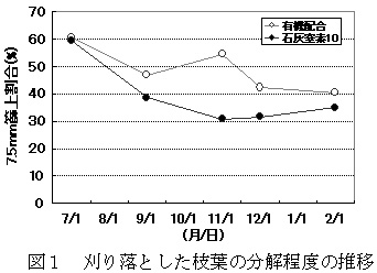 石灰窒素入り複合肥料は、刈り落とした枝葉の分解を促進する(図1)。