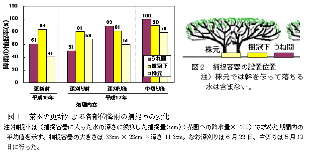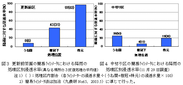 図3 更新前茶園の簡易ライシメータにおける降雨の処理区別浸透水率(異なる場所の3反復処理の平均値)