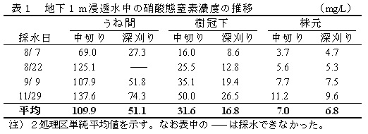 表1 地下1m浸透水中の硝酸態窒素濃度の推移(mg/L)