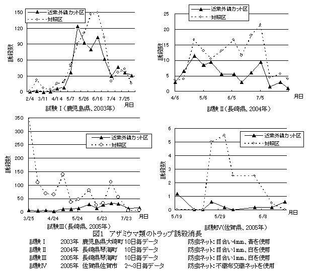 長崎県の調査では近紫外線カットフィルム区、対照区とも側窓部に1mm目防虫ネットを使用している。