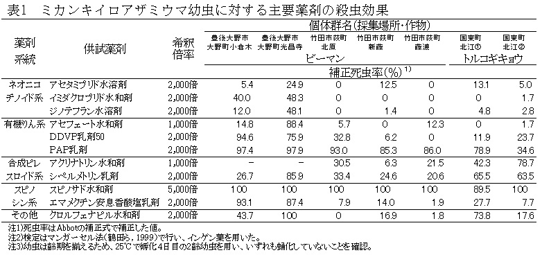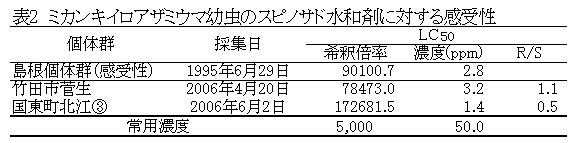 表2 ミカンキイロアザミウマ幼虫のスピノサド水和剤に対する感受性