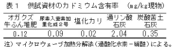 表1 供試資材のカドミウム含有率(mg/kg現物)