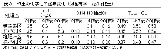 表3 作土の化学性の経年変化(Cd含有率 mg/kg乾土)
