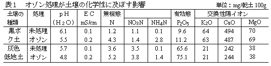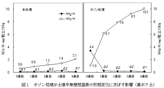 図1 オゾン処理が土壌中無機態窒素の形態変化に及ぼす影響(黒ボク土)