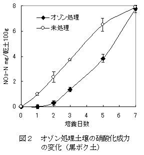 図2 オゾン処理土壌の硝酸化成力の変化(黒ボク土)