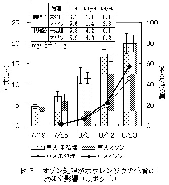図3 オゾン処理がホウレンソウの生育に及ぼす影響(黒ボク土)