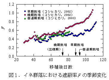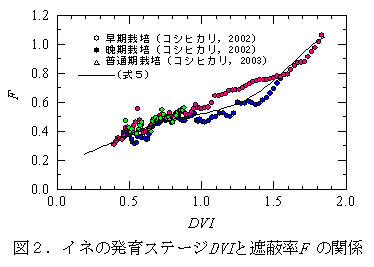 図2 イネの発育ステージDIV と遮蔽率F の関係