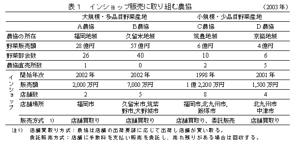 表1 インショップ販売に取り組む農協(2003年)