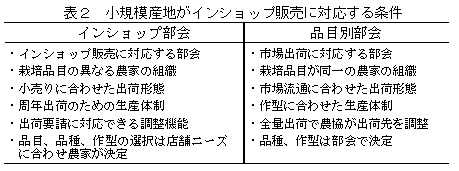 表2 小規模産地がインショップ販売に対応する条件