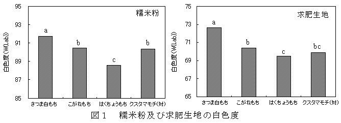 図1 糯米粉及び求肥生地の白色度