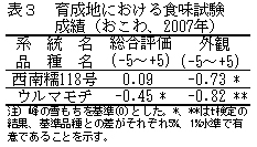 表3 育成地における食味試験成績(おこわ、2007年)