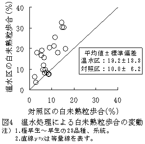 - 水稲、高温登熟性、育種法、温水処理、白未熟粒歩合、登熟温度