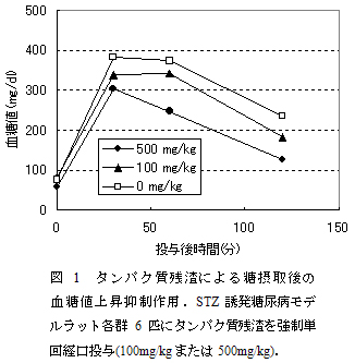 図1 タンパク質残渣による糖摂取後の血糖値上昇抑制作用