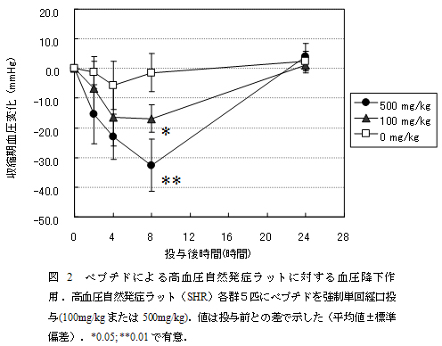 図2 ペプチドによる高血圧自然発症ラットに対する血圧降下作用