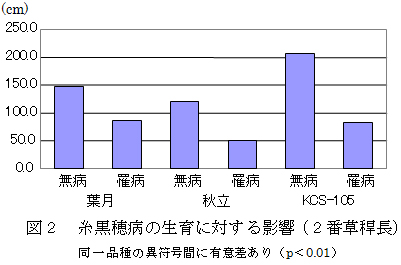図2 糸黒穂病の生育に対する影響(2番草稈長)