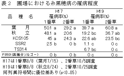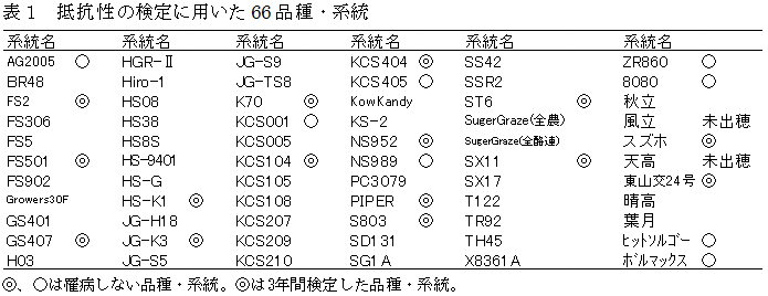 糸黒穂病に関しては、抵抗性のメカニズム等で不明な点が多く、新規レースの発生等による抵抗性品種の罹病化に注意を要する。