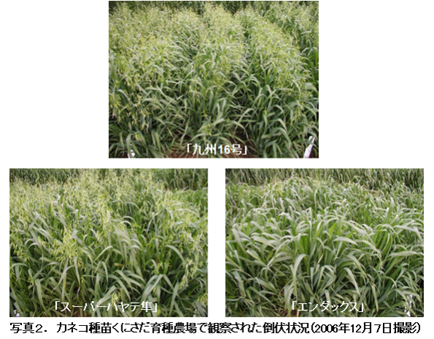 写真2 カネコ種苗くにさだ育種農場で観察された倒伏状況(2006年12月7日撮影)