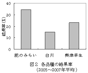 「白川」と比べ結果性が良好で(図2)、果実は扁平であり、大きさはM・L級の中玉果比率が高い(図3)。
