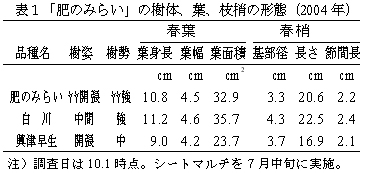 表1 「肥のみらい」の樹体、葉、枝梢の形態(2004年) |