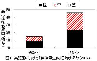 図1 実証園における「興津早生」の日焼け果数(2007) |