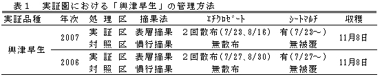 表1 実証園における「興津早生」の管理方法