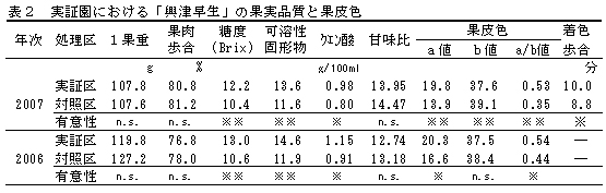 表2 実証園における「興津早生」の果実品質と果皮色