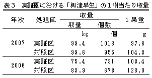 表3 実証園における「興津早生」の1樹当たり収量 |