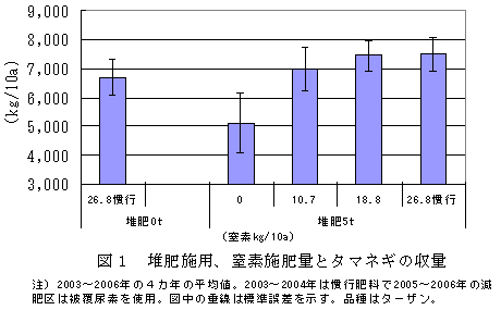 図1 堆肥施用、窒素施肥量とタマネギの収量
