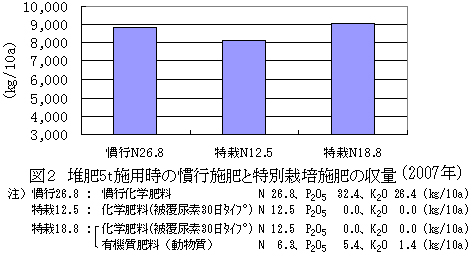 図2 堆肥5t施用時の慣行施肥と特別栽培施肥の収量