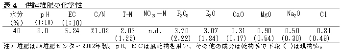 おがくず牛糞堆肥の化学性は表4に示すとおりである。